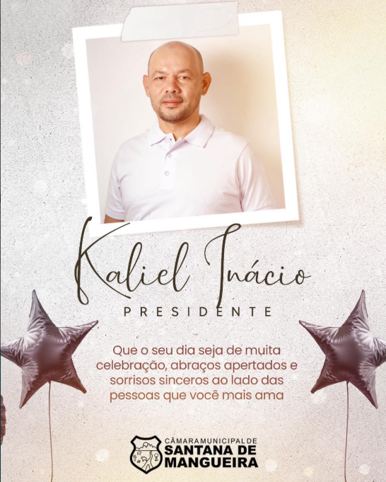 Hoje celebramos mais um ano de vida do presidente Kaliel Inácio. Que esta data seja marcada por saúde, conquistas e muitas realizações. Reconhecemos e parabenizamos seu compromisso, dedicação e trabalho em prol do desenvolvimento de Santana de Mangueira. Feliz aniversário e votos de ainda mais sucesso em sua trajetória!
