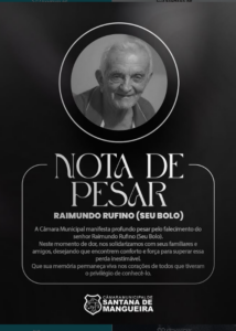 A Câmara Municipal manifesta profundo pesar pelo falecimento do senhor Raimundo Rufino (Seu Bolo). Neste momento de dor, nos solidarizamos com seus familiares e amigos,